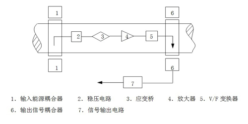 電源經過處理后送1 ,經耦合將能源送到應變軸上,由  2  變成穩定電壓供給應變軸上各電子器件。 3  將應變軸的微小變形轉換成電信號,經過  4  放大送到  5  ,經  6  輸出,通過  7  整形后輸出調頻方波信號。