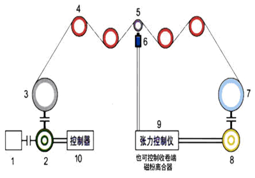 張力控制系統由張力檢測傳感器、張力控制儀、磁粉制動器或磁粉離合器組成。