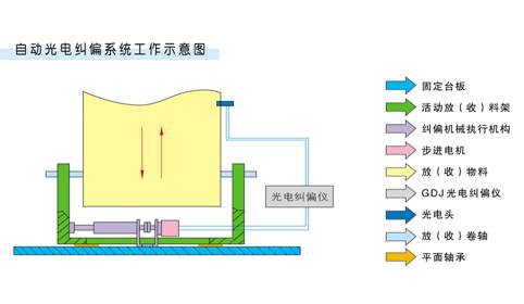 自動糾偏控制儀與光電傳感器、機械執(zhí)行機構(gòu)可組合成閉環(huán)的自動控制系統(tǒng)。 廣泛應(yīng)用于印刷、塑料、紙業(yè)、玻纖、有色金屬、輕工、紡織、印染、印刷運輸?shù)刃袠I(yè)。對物料在卷取或者直線傳送過程中產(chǎn)生的位置偏移,進行精確測量、對比、糾正,使物料嚴格按既定的位置和軌跡運動。 應(yīng)用于自動跟蹤。能使物體按照指定的軌跡和方向二維自動跟蹤運動。 一、系統(tǒng)的組成 該系統(tǒng)由三部分組成: 1、光電傳感器 檢測物料位置偏差,向光電糾偏儀發(fā)出位置偏差信號。 2、GDJ-3A 型光電糾偏儀 接受光電傳感器位置偏差信號,處理并向機械執(zhí)行機構(gòu)發(fā)出糾偏控制信號。 3、機械執(zhí)行機構(gòu) 接受光電糾偏儀發(fā)出的控制信號,執(zhí)行對物料的牽引,修正物料運行時的偏差。