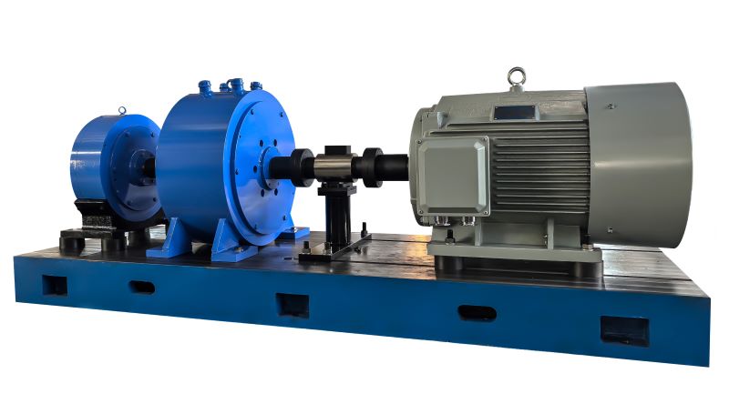電機加載測試臺,檢測電機在運行工況下的狀態,測功機采用電渦流制動器作為負載,高轉速,大功率。 連接磁粉制動器,可測堵轉。